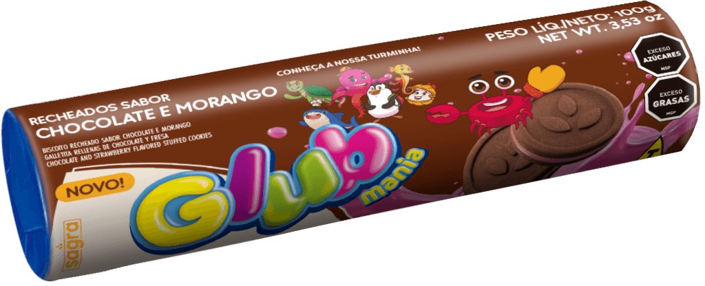 biscoito recheado chocolate com morango glub pct c/ 100g